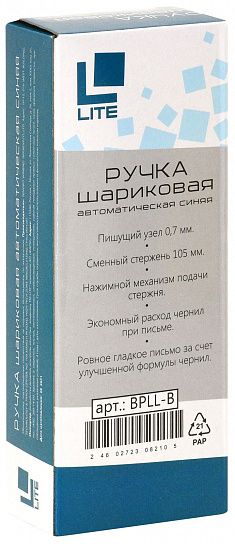 Оптимизируйте рабочие процессы с помощью письменных принадлежностей для офиса от INFORMAT! Ручка шариковая автоматическая LITE 0,7 мм синяя — предмет, без которого нельзя обойтись в рабочей рутине. Производитель гарантирует высокое качество и безупречные характеристики товаров на протяжении всего срока службы.