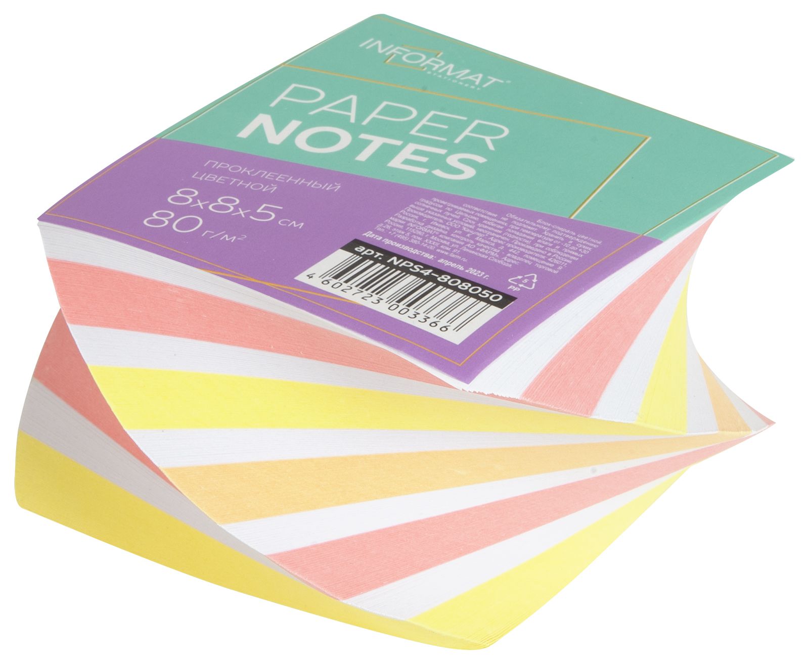 Блок для записи цветной изготовлен из офсетной бумаги, прочно проклеен по корешку. Листы быстро и аккуратно отделяются от стопки блока. Блок состоит из 4-х ярких цветов, гармоничное сочетание которых подбиралось специально.