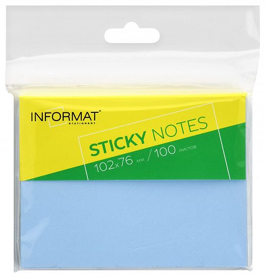 Цвет: голубой Плотность, г/м2: 75 Количество в упаковке, шт: 1 Количество листов: 100 Линовка: без линовки Размер: 102х76 мм Мин. партия и варианты упаковок: 1 / 12 / 288 Блок самоклеящийся INFORMAT 102х76 мм 100 листов, голубой пастель