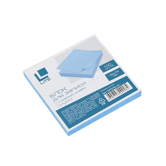 Цвет: голубой Плотность, г/м2: 60 Количество в упаковке, шт: 1 Количество листов: 100 Линовка: без линовки Размер: 76х76 мм Мин. партия и варианты упаковок: 1 / 12 / 432 Блок самоклеящийся LITE 76х76 мм, 100 листов, голубой
