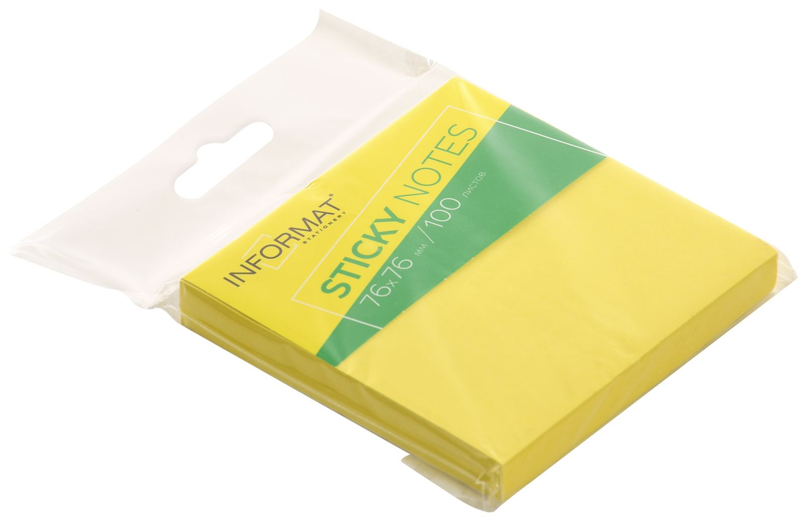 Цвет: желтый Плотность, г/м2: 75 Количество в упаковке, шт: 1 Количество листов: 100 Линовка: без линовки Размер: 76х76 мм Мин. партия и варианты упаковок: 1 / 12 / 384 Блок самоклеящийся INFORMAT 76х76 мм 100 листов, желтый пастель