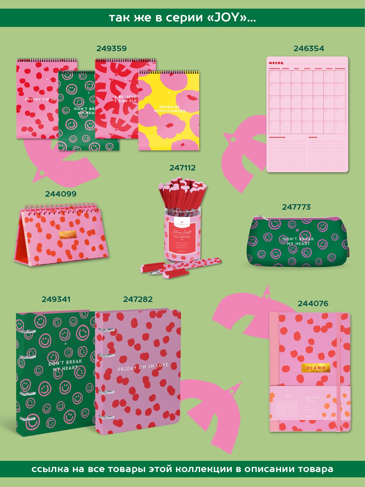Все товары коллекции: JOYВсе коллекции LorexЕжедневник недатированный серии JOY, выполнен из прочного картона с эффектом soft touch и тиснением золотой фольги. Твердая обложка с рисунком, тонированная бумага 80 г/м2, формат А6, 192 стр.