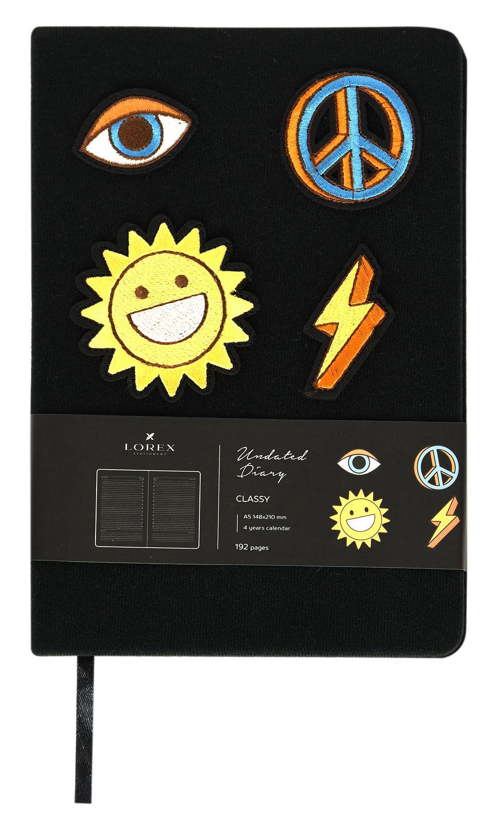 Ежедневник А5 недатированный LOREX EYE-POPPING 96 л. черный, твердая обложка ткань, вышивка, с ляссе