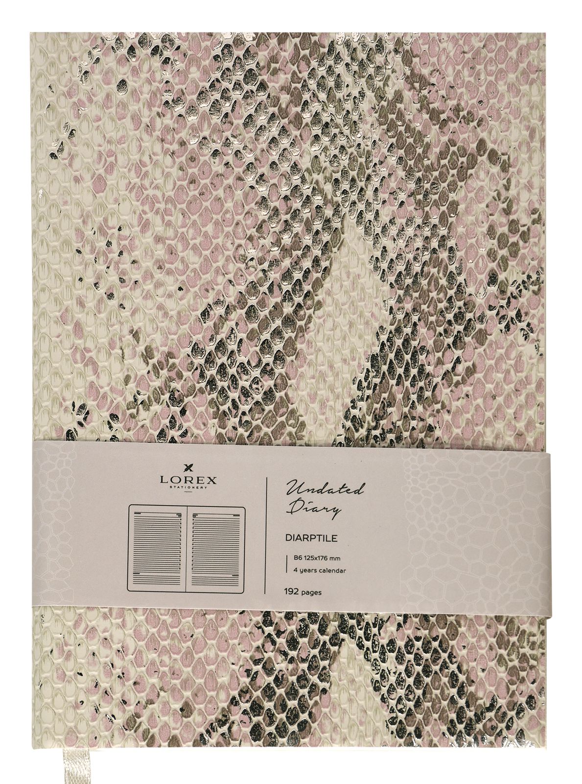 Ежедневник В6 недатированный LOREX DIARPTILE 96 л. жемчужный искусственная кожа, фольга, с ляссе, эффект чешуи