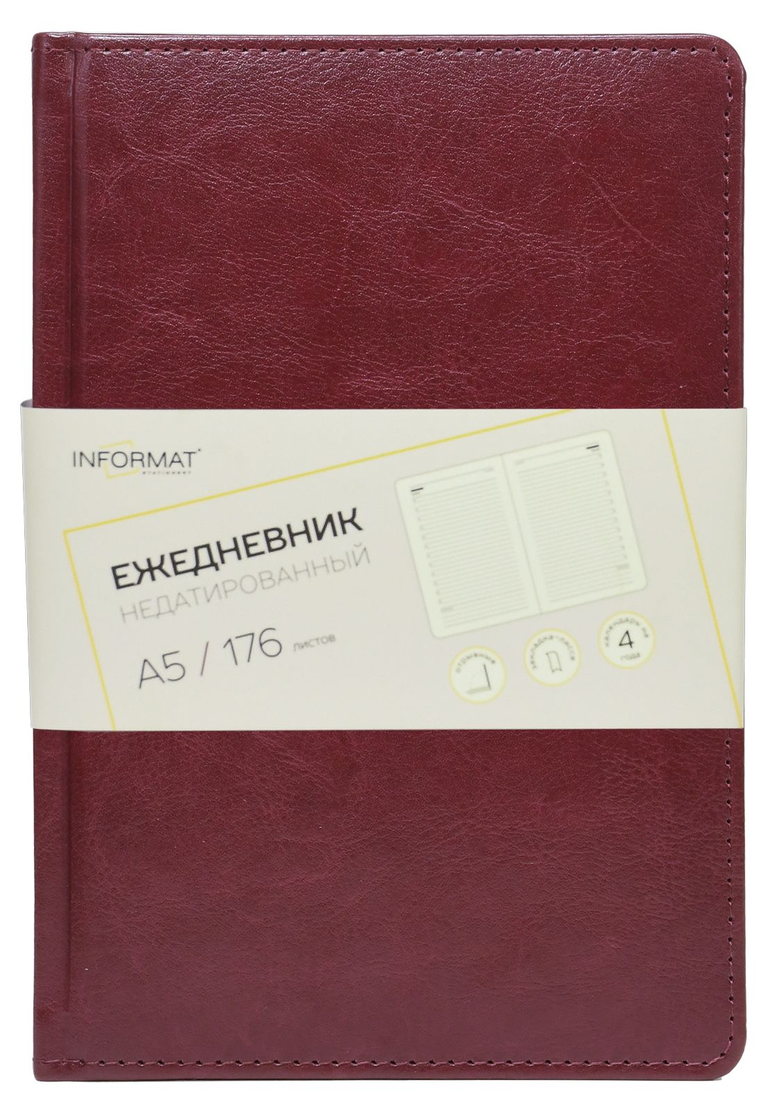 Ежедневник А5 недатированный INFORMAT ПЕРСОНА 176 л. бордовый, искусственная кожа, с ляссе