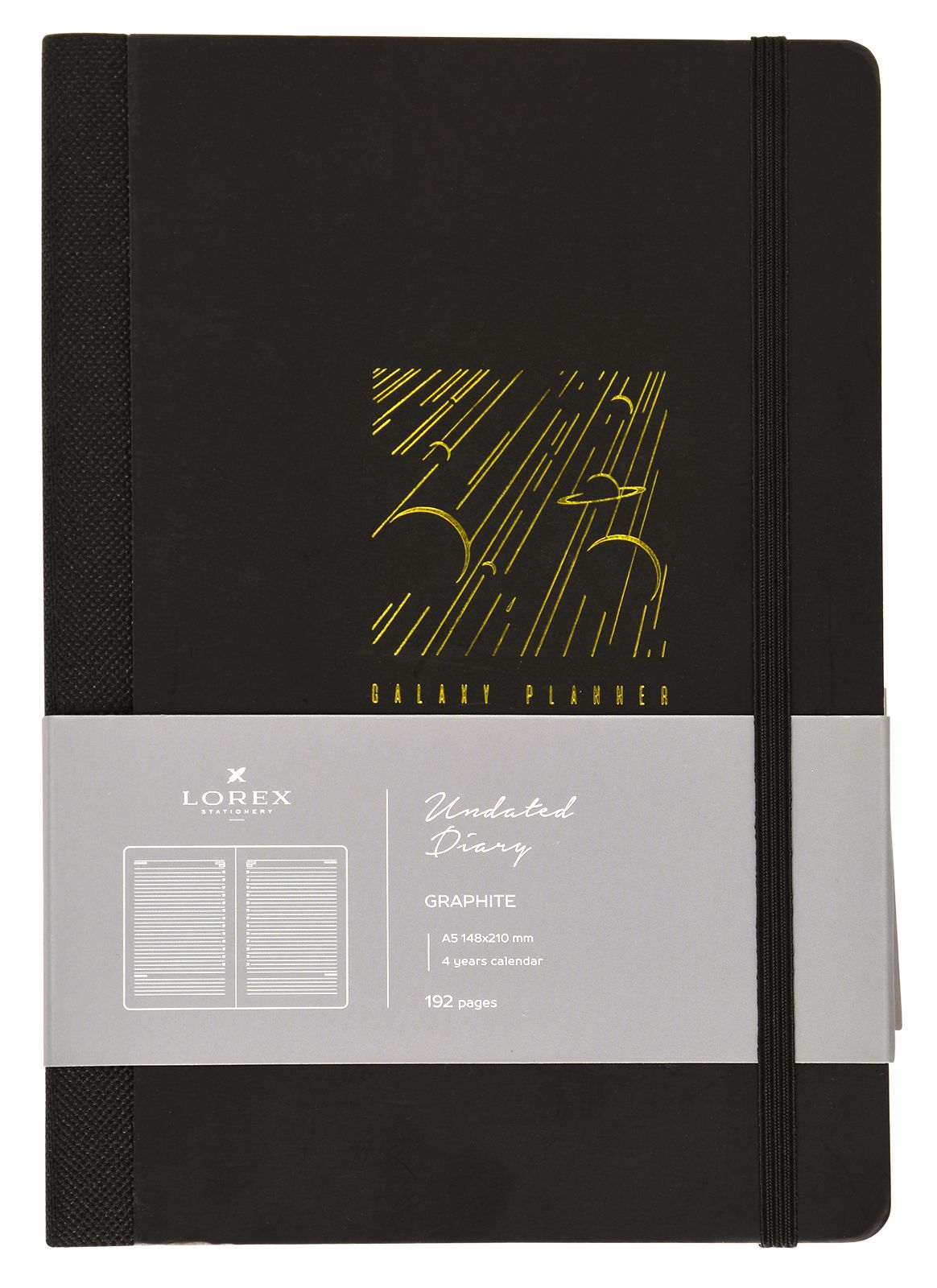 Ежедневник А5 недатированный LOREX GRAPHITE 96 л. черный, переплетный картон, soft touch, фольга, застежка на резинке, с ляссе