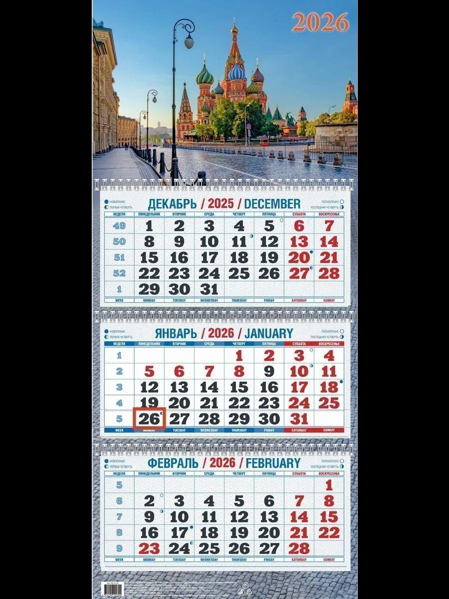 "Календарь настенный трехблочный квартальный с курсором, на трех гребнях, 310х680 мм.Настенный квартальный трёхблочный календарь с курсором, формат 310х680 мм, в индивидуальной упаковке (европакет с подвесом). Состоит из красочного постера на мелованном картоне плотностью 250 г/м2, покрытого глянцевым УФ-лаком, трёх календарных блоков с нумерацией недель на офсетной бумаге плотностью 70 г/м2, запечатанных в 2 краски, и полноцветных красочных подложек (мелованный картон плотностью 250 г/м2, покрытый глянцевым УФ-лаком). Календарь скреплён тремя металлическими гребнями, вешается на стену при помощи кольца (пикколо)."