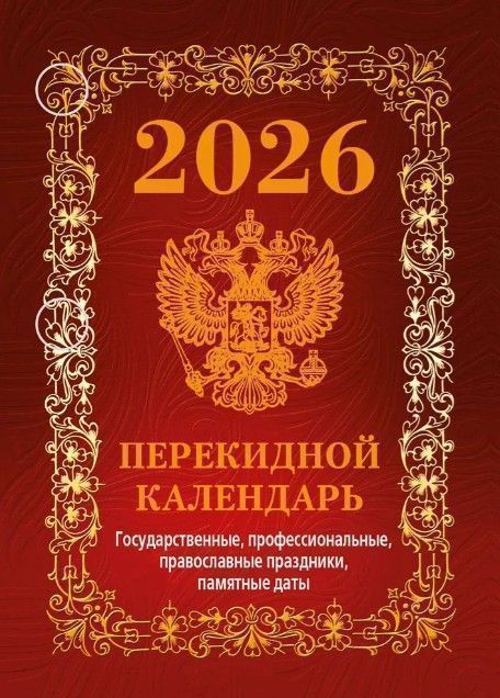 "Настольный перекидной календарь, 4-красочный, на офсетной бумаге, 100х140 мм.Настольный перекидной календарь, 4-красочный, на офсетной бумаге, формат 100х140 мм, в индивидуальной упаковке (термопленка). Количество страниц: 320. Расстояние от края до верхнего прокола - 18 мм. Расстояние между проколами - 40 мм. Блок: бумага офсетная плотностью 60 г/м2. Печать блока в четыре краски. Обложка: бумага мелованная плотностью 170 г/м2. Печать обложки в четыре краски. Отделка обложки – золотая фольга. В календаре отмечены государственные, профессиональные, православные праздники, памятные даты."