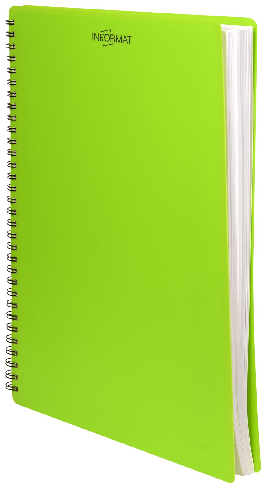 Формат: А4 Количество листов: 96 Тип крепления: гребень Материал обложки: пластиковая обложка Линовка: клетка Размер: 205х285 мм Мин. партия и варианты упаковок: 1 / 10 Тетрадь 96 л. А4 клетка, на гребне, INFORMAT САЛАТОВАЯ офсет, пластиковая обложка, фольга