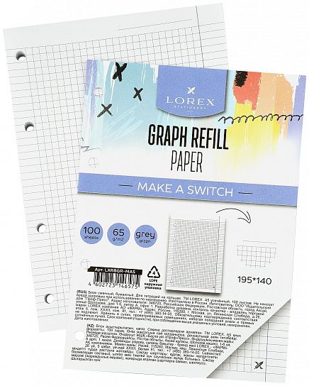 Сменный блок LOREX GRAPH для тетрадей на кольцах для тех, кто хочет выделяться!Линовка блока - приятная серая клетка. Количество листов в комплекте 100 штук - их точно хватит надолго. Формат листов А5 усеченный (195*140 мм). Данный формат идеально подходит под тетради на кольцах LOREX.Делай так, как тебе нравится! Комбинируй, выделяйся! Перейти в карточку товара