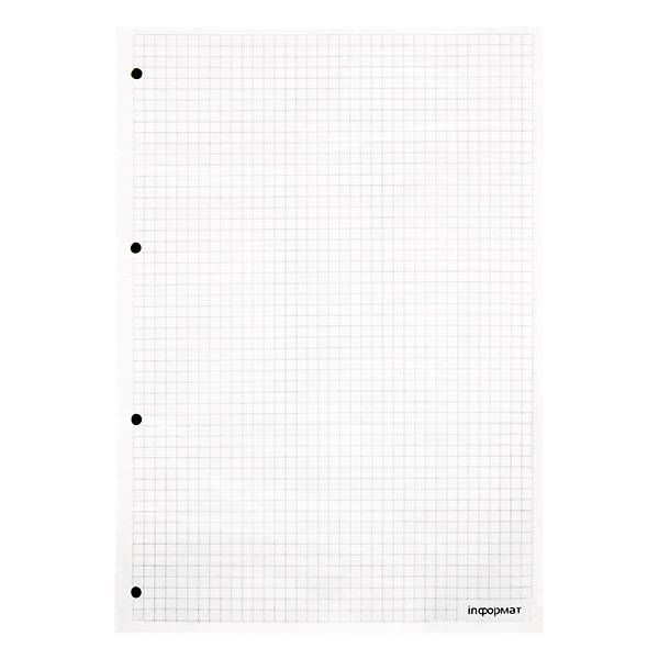 Сменный блок INFORMAT содержит 100 листов в клетку формата А4 и предназначен для блокнотов и тетрадей на кольцах. Вставить листы очень просто: раздвиньте стык у корешка, приложив немного усилий, и насадите листы на кольца через специальные отверстия.