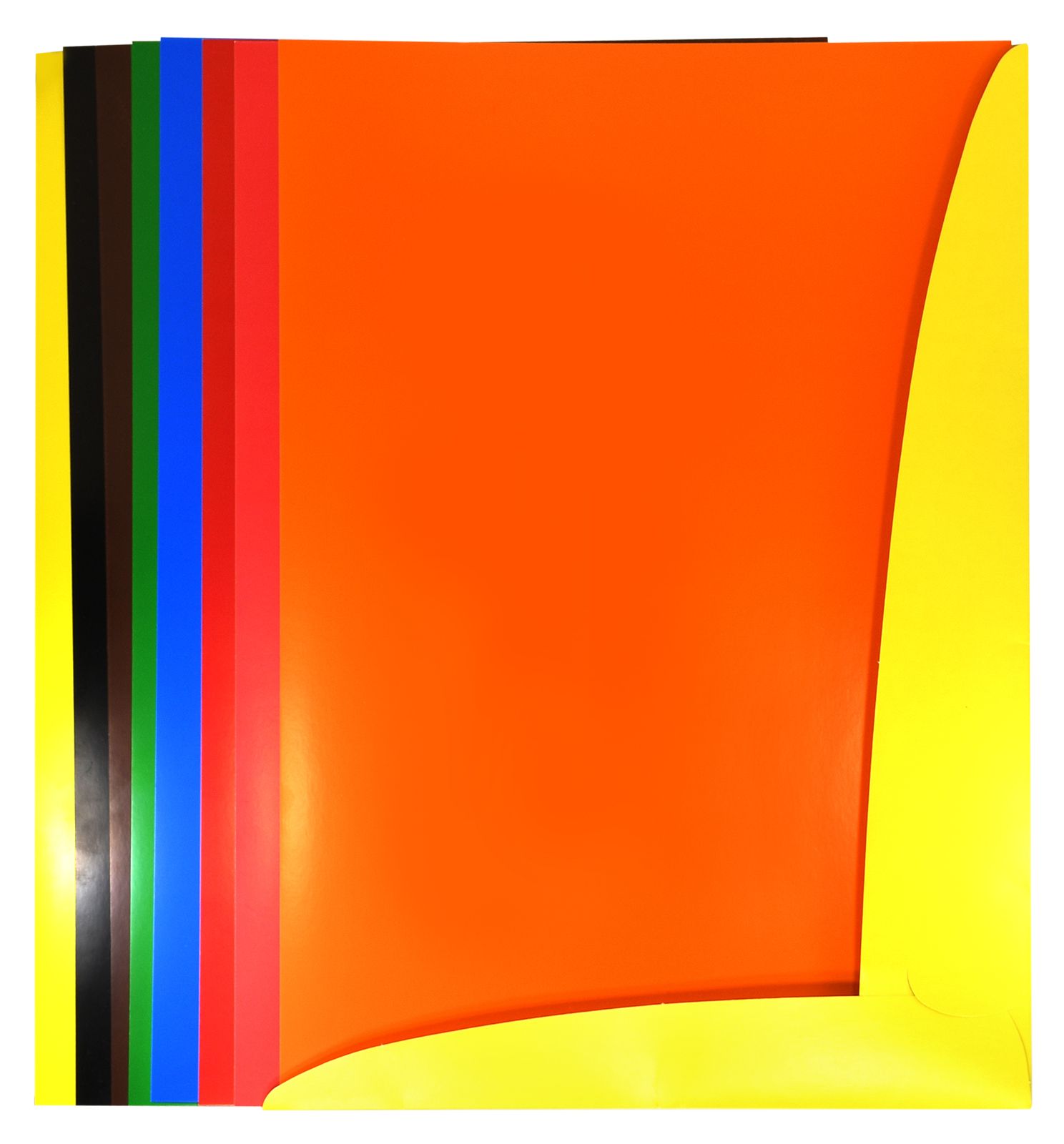 - Цветной — стандартный набор включает 8 листов А3 различных оттенков. Среди них обязательно присутствует красный, желтый, зеленый, черный, синий.