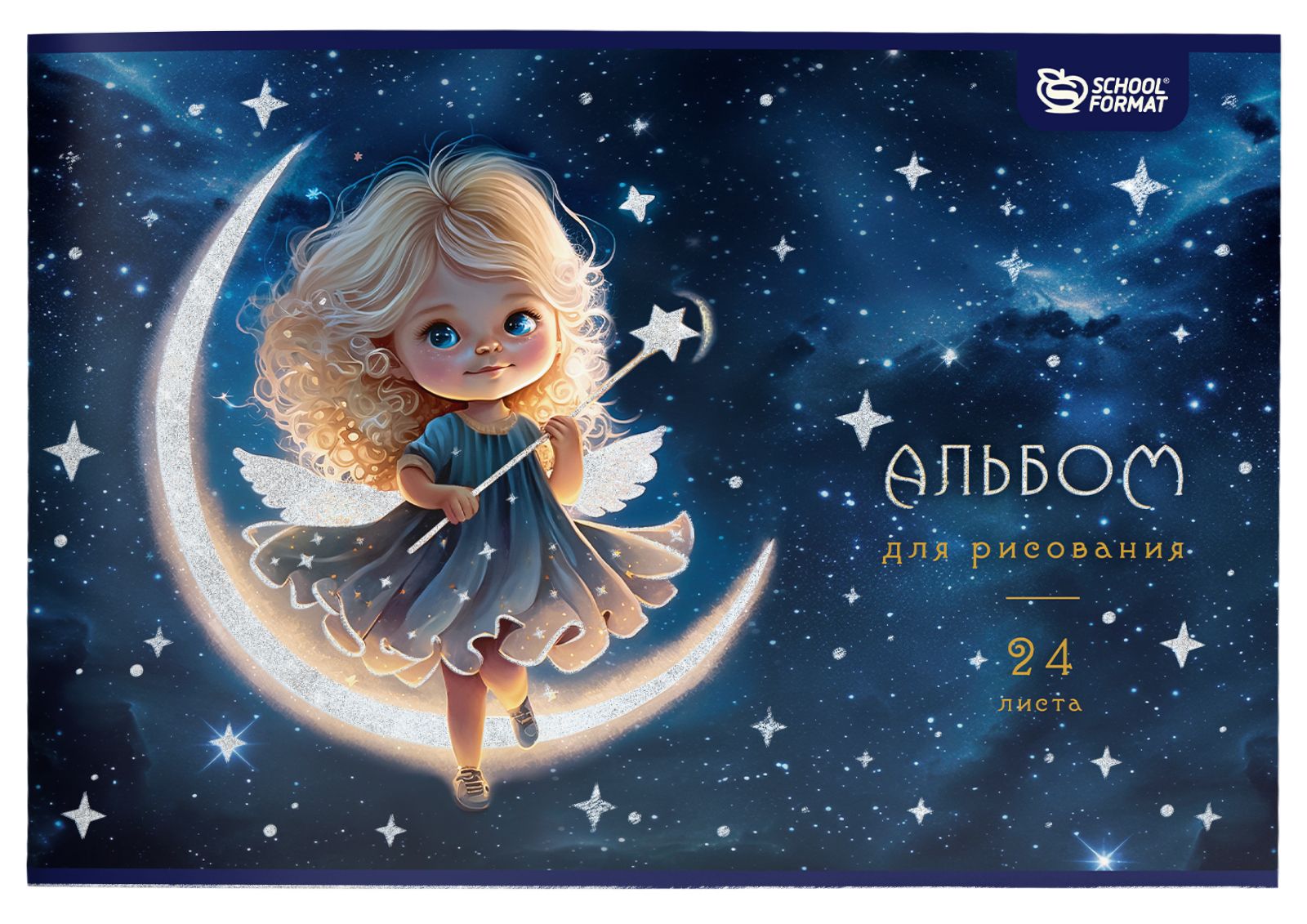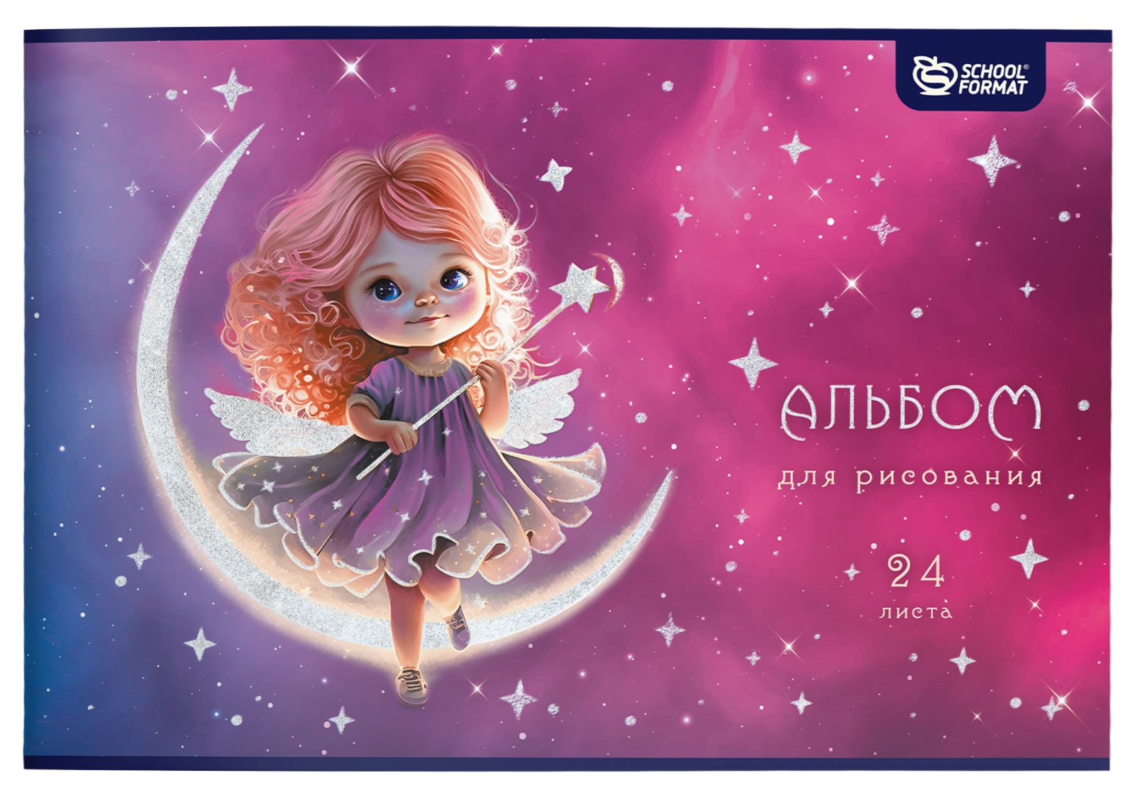 Формат: А4 Количество листов: 24 Тип крепления: скрепка Материал обложки: мелованный картон Вид продукции для творчества: Альбом для рисования Вид бумаги внутреннего блока: офсет Мин. партия и варианты упаковок: 1 / 4 / 48 Альбом для рисования 24 л. А4 на скрепке Schoolformat МИР ВОЛШЕБСТВА мелованный картон, выборочный УФ-лак, глиттер, офсет
