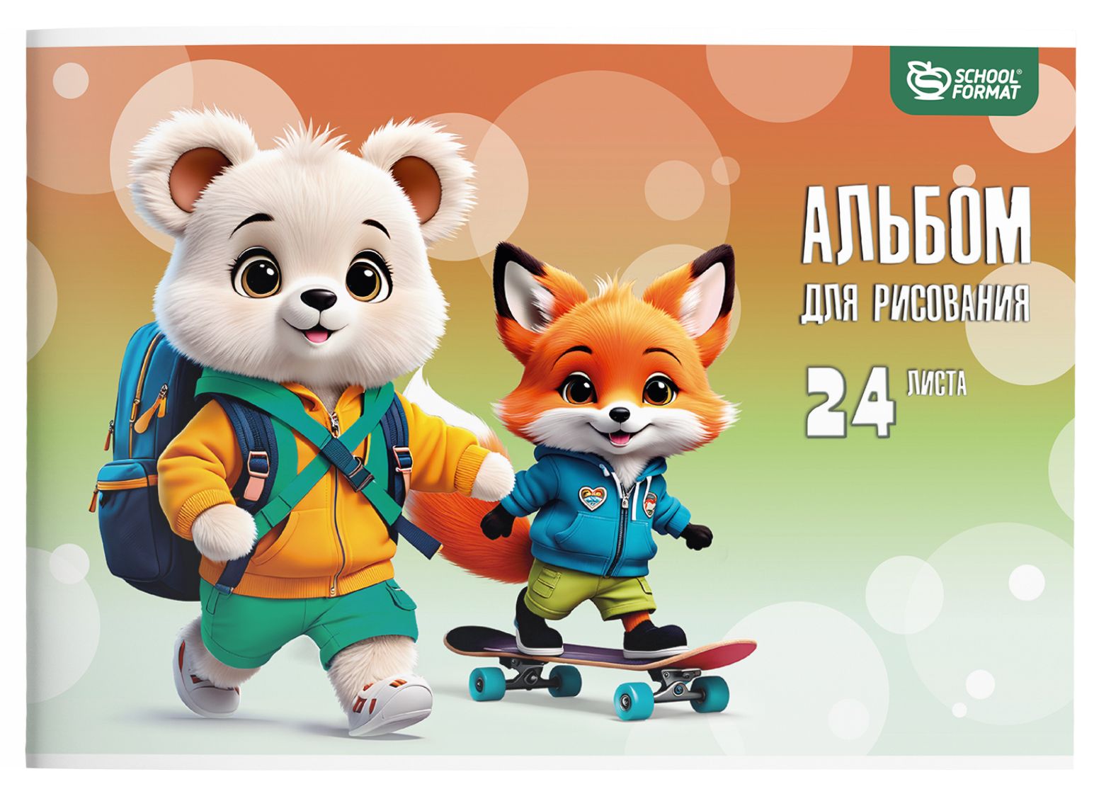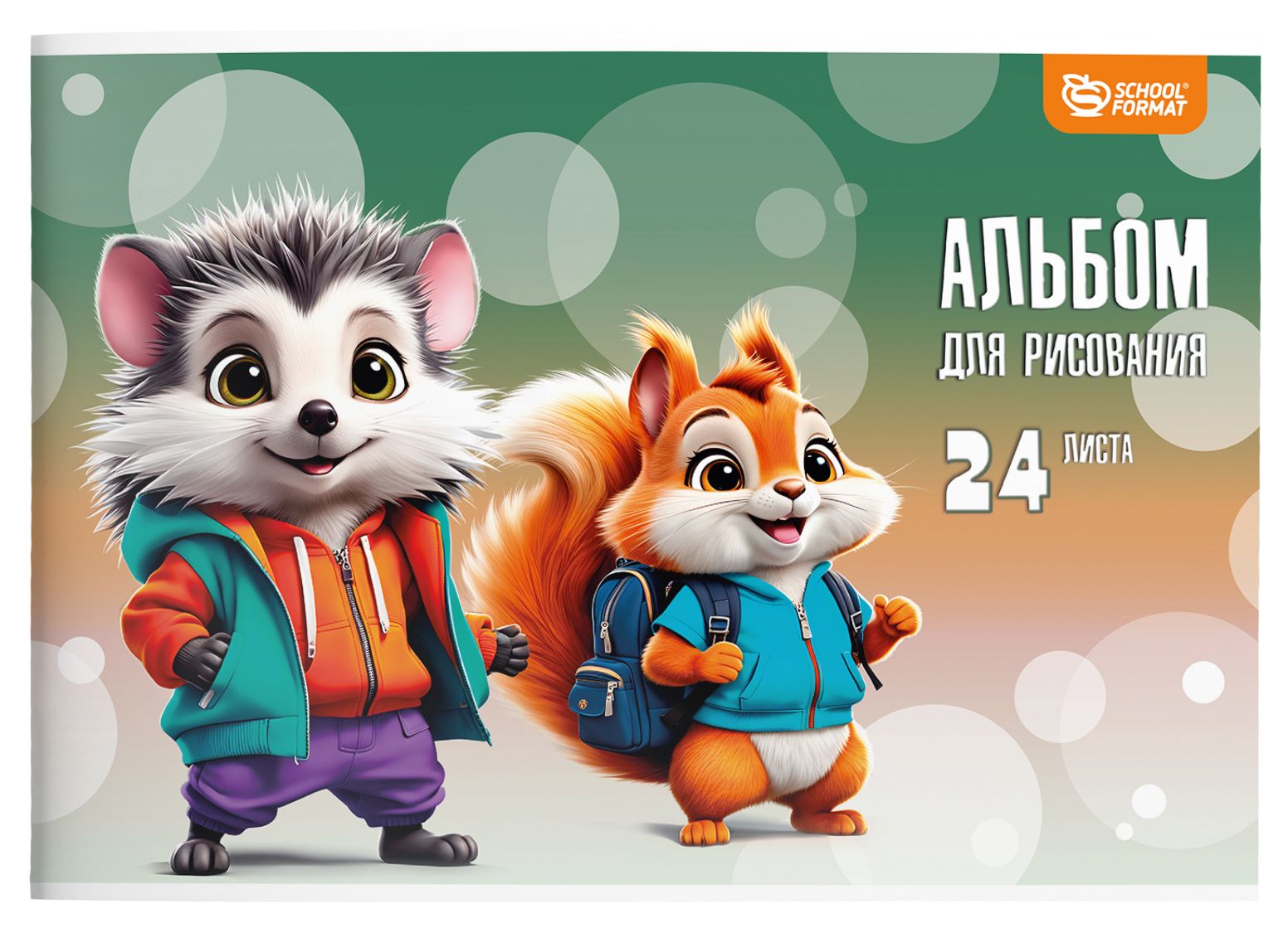 Формат: А4 Количество листов: 24 Тип крепления: скрепка Материал обложки: мелованный картон Вид продукции для творчества: Альбом для рисования Вид бумаги внутреннего блока: офсет Мин. партия и варианты упаковок: 1 / 8 / 64 Альбом для рисования 24 л. А4 на скрепке Schoolformat ЯРКИЕ ЗВЕРЯТА мелованный картон, ВД-лак, офсет
