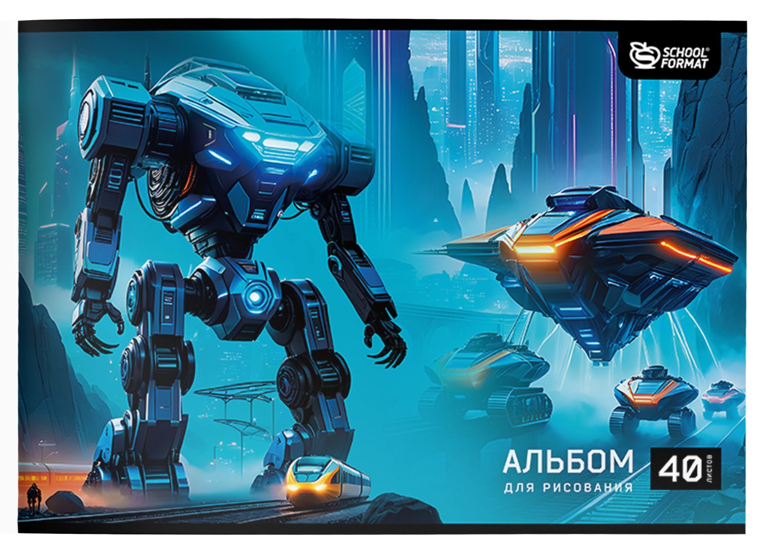 Формат: А4 Количество листов: 40 Тип крепления: скрепка Материал обложки: мелованный картон Вид продукции для творчества: Альбом для рисования Вид бумаги внутреннего блока: офсет Мин. партия и варианты упаковок: 1 / 8 / 40 Альбом для рисования 40 л. А4 на скрепке Schoolformat ТЕХНИКА КОСМОСА мелованный картон, ВД-лак, офсет