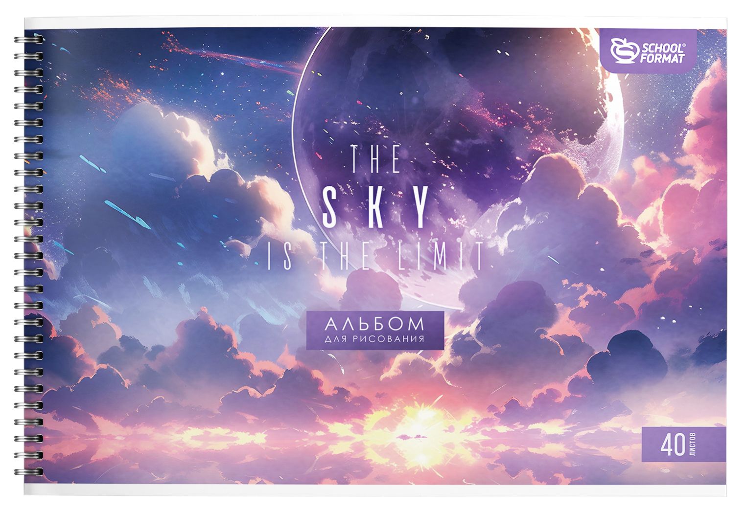 Формат: А4 Количество листов: 40 Тип крепления: гребень Материал обложки: мелованный картон Вид продукции для творчества: Альбом для рисования Вид бумаги внутреннего блока: офсет Мин. партия и варианты упаковок: 1 / 2 / 28 Альбом для рисования 40 л. А4 на гребне Schoolformat ВОЛШЕБНОЕ НЕБО мелованный картон, сплошной УФ-лак, офсет