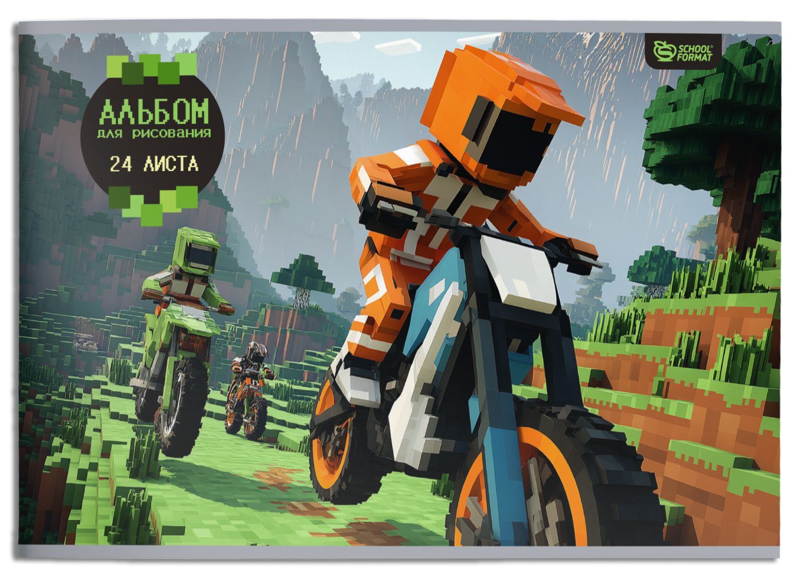 Формат: А4 Количество листов: 24 Тип крепления: скрепка Материал обложки: мелованный картон Вид продукции для творчества: Альбом для рисования Вид бумаги внутреннего блока: офсет Мин. партия и варианты упаковок: 1 / 4 / 48 Альбом для рисования 24 л. А4 на скрепке Schoolformat МАЙНКАР мелованный картон, сплошной УФ-лак, офсет