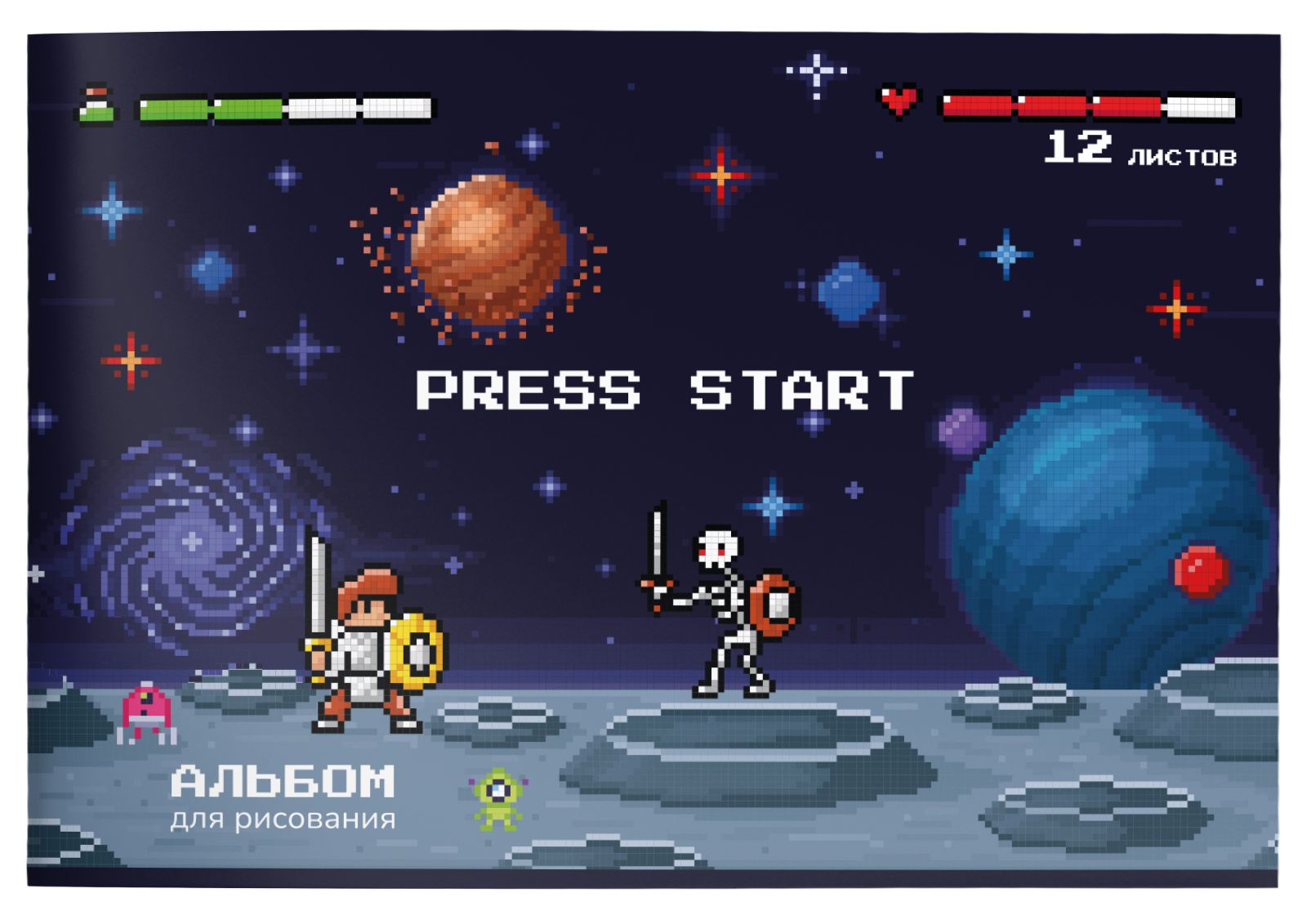 Формат: А4 Количество листов: 12 Тип крепления: скрепка Материал обложки: мелованный картон Вид продукции для творчества: Альбом для рисования Вид бумаги внутреннего блока: офсет Мин. партия и варианты упаковок: 1 / 4 / 60 Альбом для рисования 12 л. А4, скрепка Schoolformat МИР ПИКСЕЛЕЙ мелованный картон, матовая ламинация, офсетная бумага