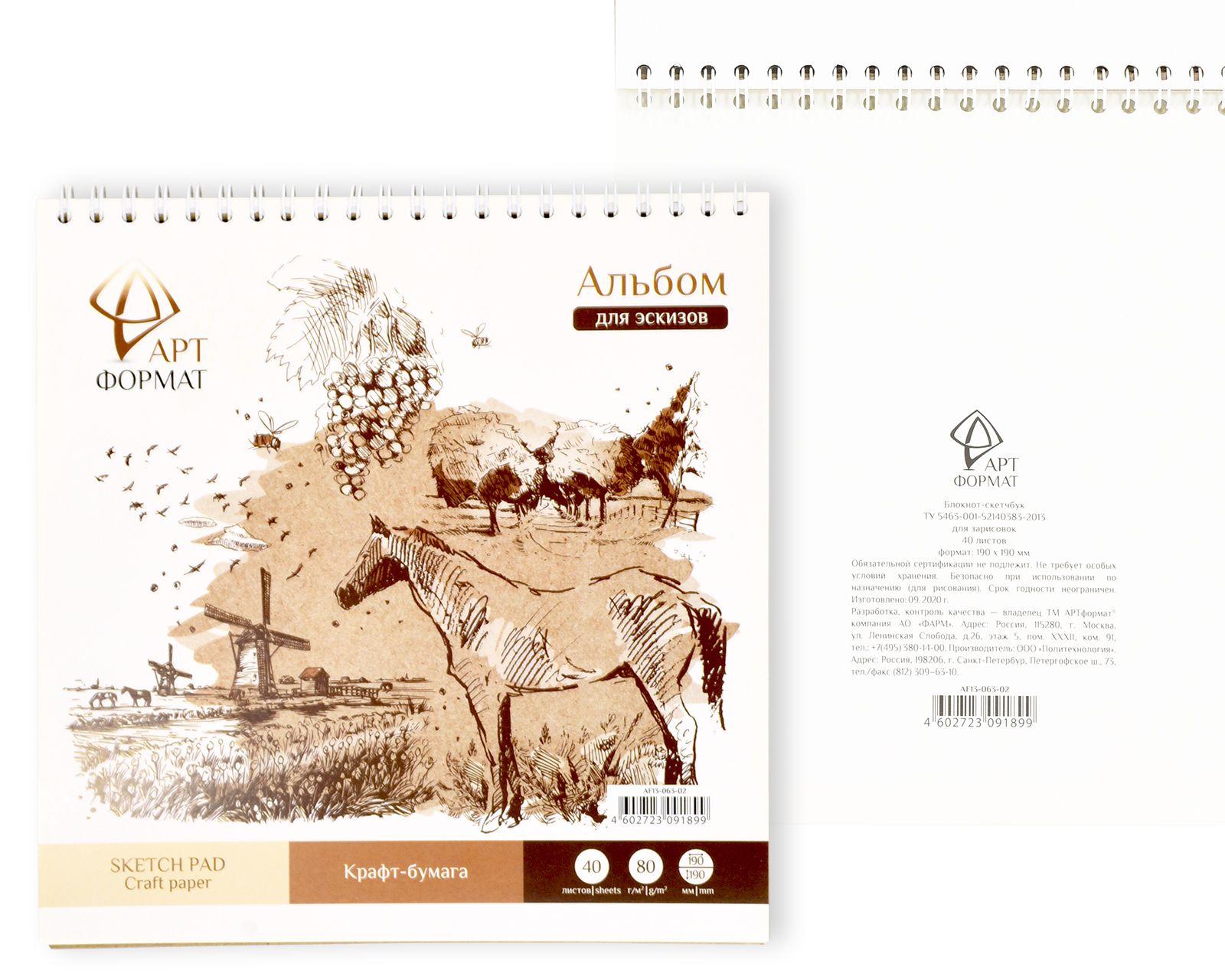 Формат: нет Количество листов: 40 Тип крепления: гребень Материал обложки: мелованный картон Вид продукции для творчества: Альбом для эскизов Вид бумаги внутреннего блока: крафт Мин. партия и варианты упаковок: 1 / 20 Комплект альбомов для эскизов 40 л. 190х190 мм, гребень АРТформат мелованный картон, ВД-лак, с жесткой подложкой, крафтовая бумага 2шт