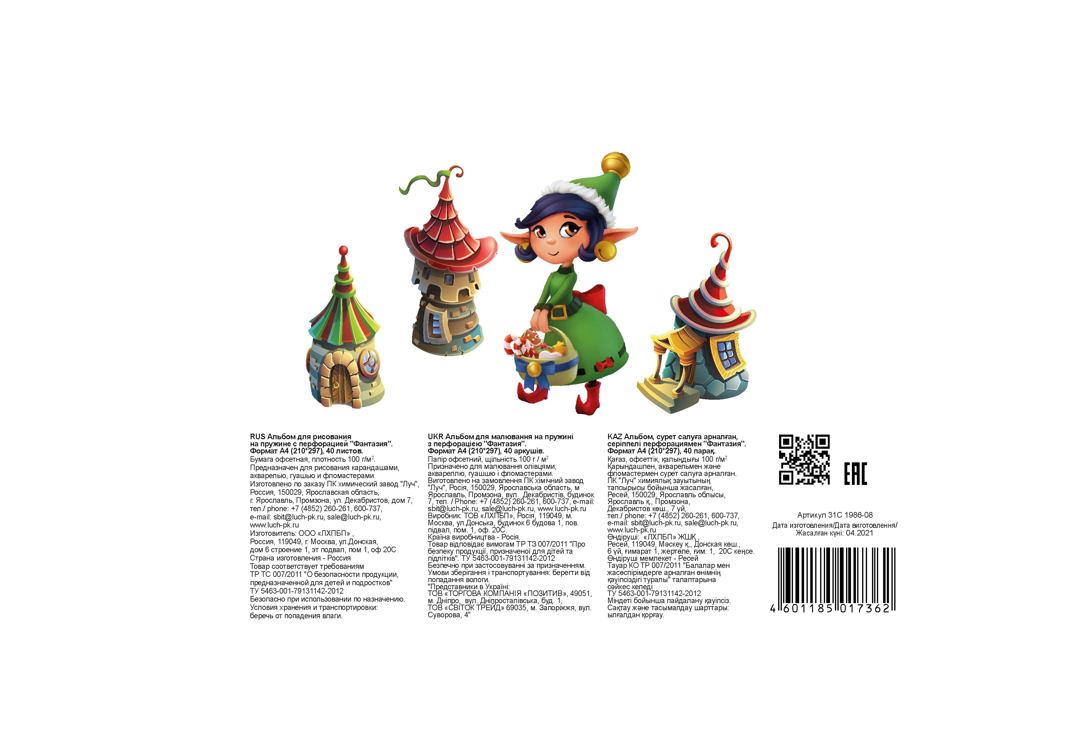 Формат: А4 Количество листов: 20 Тип крепления: склейка Материал обложки: мелованный картон Вид продукции для творчества: Альбом для рисования Вид бумаги внутреннего блока: офсет Мин. партия и варианты упаковок: 1 / 60 -