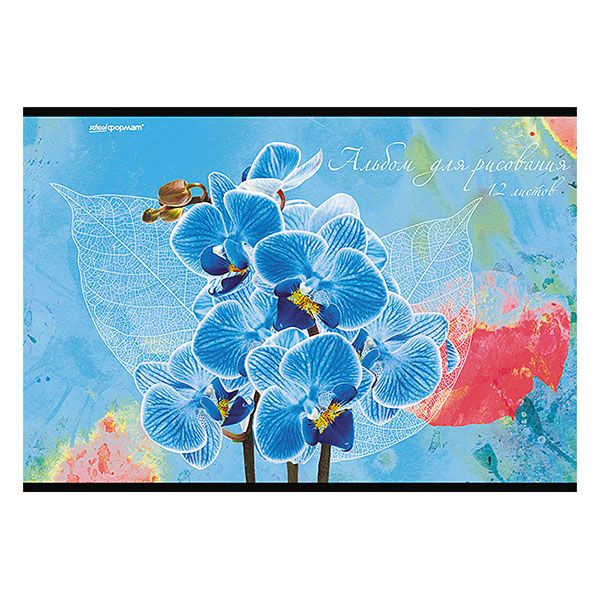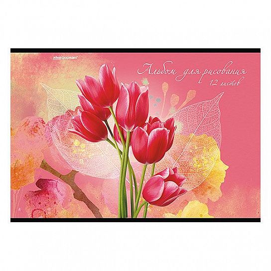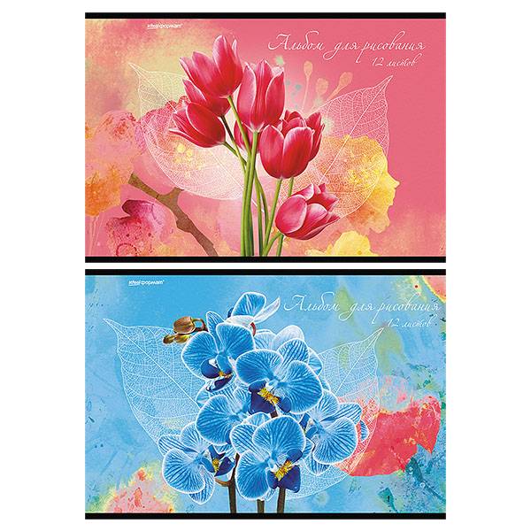 Альбом для рисования 12 л. А4, скрепка ЦВЕТЫ мелованный картон, ВД-лак