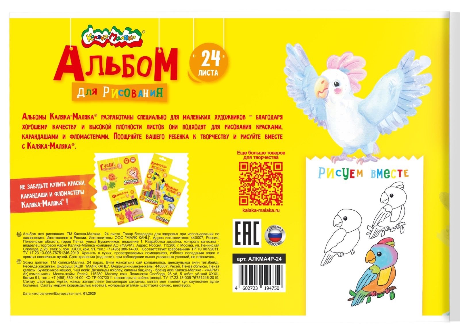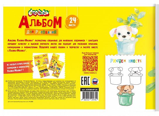 Альбом Каляка-Маляка является оптимальным решением для детского творчества: листы не просвечивают и не деформируются при намокании и высыхании, поэтому подходят для рисования красками, карандашами и фломастерами.