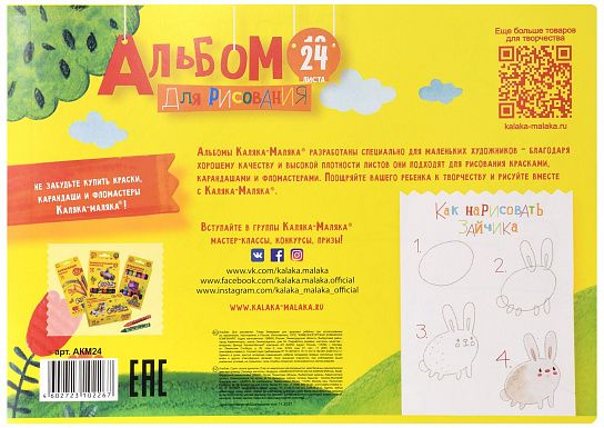 Альбом Каляка-Маляка® является оптимальным решением для детского творчества: листы не просвечивают и не деформируются при намокании и высыхании, поэтому подходят для рисования красками, карандашами и фломастерами.
