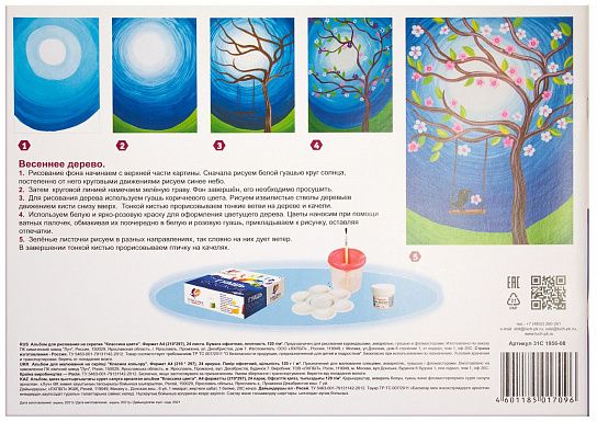 Честный размер альбома на скрепке, формат А4 - 210*297мм. Обложка из высококачественного целлюлозного картона плотностью 190г/м3. Внутренний блок из офсетной бумаги плотностью 120 г/м3 из 24 листов. На оборотной стороне каждого альбома мастер-класс по рисованию. Транспортная упаковка - гофрокороб.