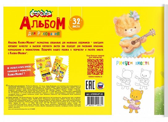 Альбом Каляка-Маляка является оптимальным решением для детского творчества: листы не просвечивают и не деформируются при намокании и высыхании, поэтому подходят для рисования красками, карандашами и фломастерами.