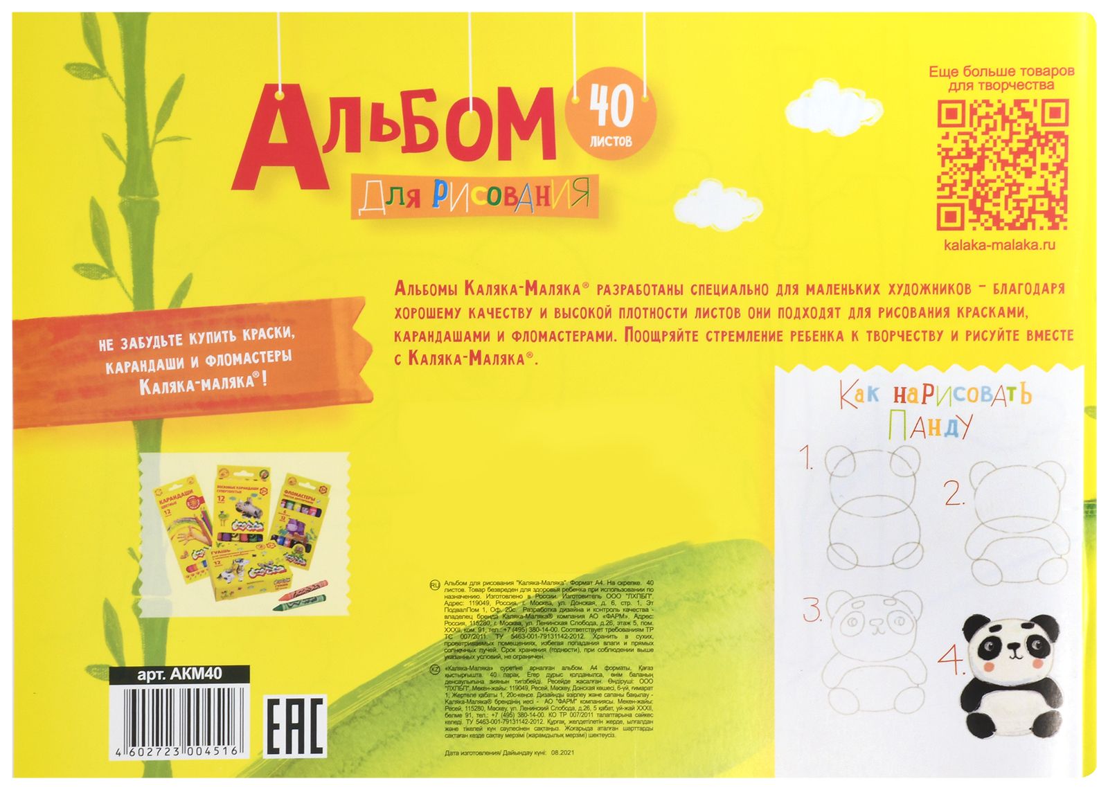 Альбом Каляка-Маляка® является оптимальным решением для детского творчества: листы не просвечивают и не деформируются при намокании и высыхании, поэтому подходят для рисования красками, карандашами и фломастерами.
