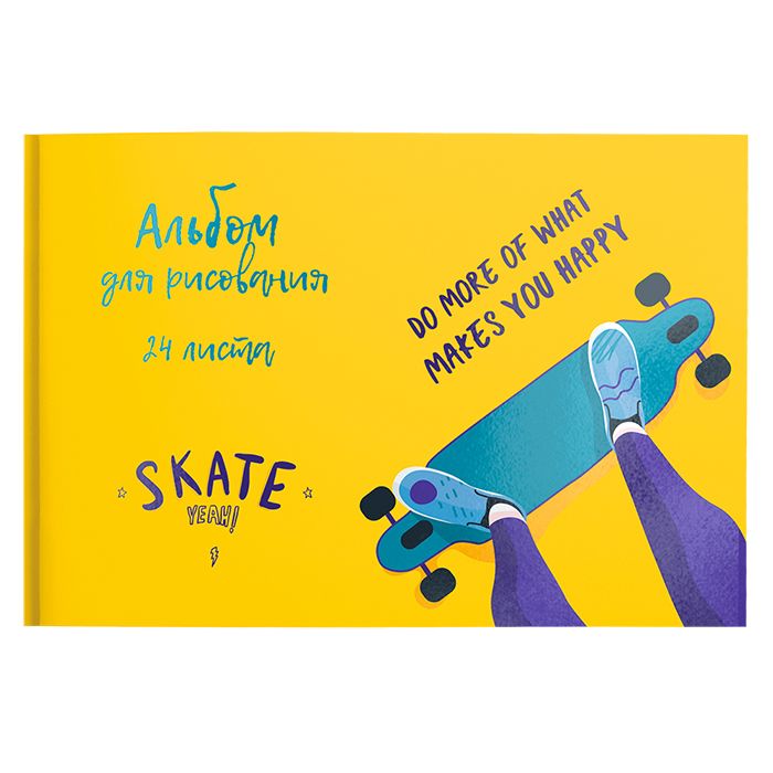 Формат: А4 Количество листов: 24 Тип крепления: склейка Материал обложки: мелованный картон Вид продукции для творчества: Альбом для рисования Вид бумаги внутреннего блока: офсет Мин. партия и варианты упаковок: 1 / 30 Альбом для рисования Schoolformat 24 л. А4, склейка МОДНЫЙ СКЕЙТ мелованный картон, матовая ламинация, выборочный лак