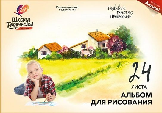 Формат: А4 Количество листов: 24 Тип крепления: склейка Материал обложки: мелованный картон Вид продукции для творчества: Альбом для рисования Вид бумаги внутреннего блока: офсет Мин. партия и варианты упаковок: 1 / 30 -