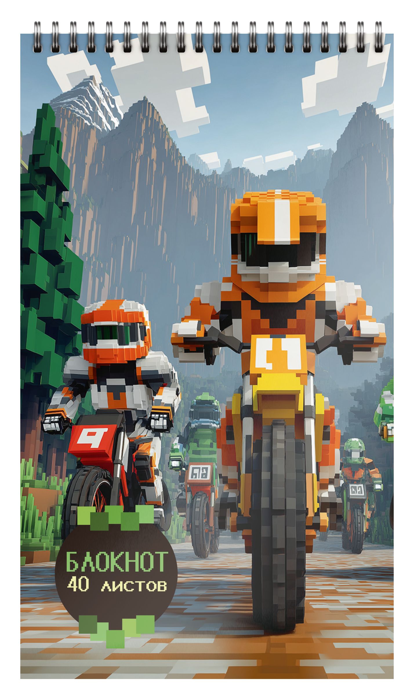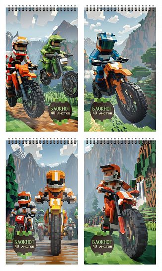 Формат: А5 Количество листов: 40 Тип крепления: гребень Материал обложки: мелованный картон Отделка обложки: сплошной УФ-лак Линовка: клетка Мин. партия и варианты упаковок: 1 / 20 -