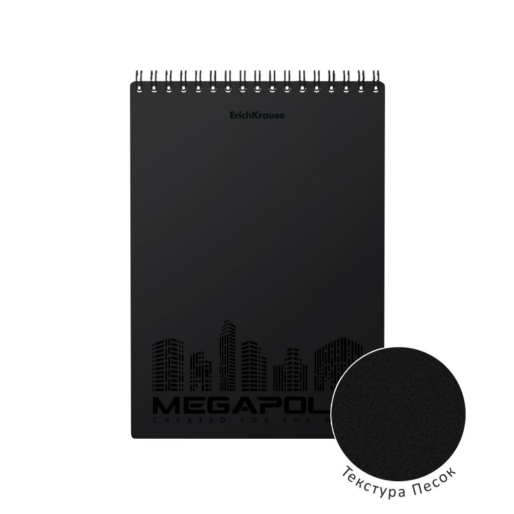 Формат: А5 Количество листов: 80 Тип крепления: спираль Материал обложки: пластиковая обложка Отделка обложки: выборочный УФ-лак Линовка: клетка Мин. партия и варианты упаковок: 1 / 40 Блокнот А5 80 л. клетка ErichKrause MEGAPOLIS на спирали, пластиковая обложка черная, выборочный УФ-лак, с перфорацией