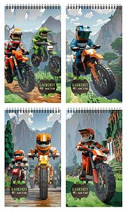 Формат: А5 Количество листов: 50 Тип крепления: гребень Материал обложки: мелованный картон Отделка обложки: ВД-лак Линовка: клетка Мин. партия и варианты упаковок: 1 / 32 -