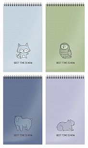 Формат: А5 Количество листов: 60 Тип крепления: гребень Материал обложки: мелованный картон Отделка обложки: сплошной УФ-лак Линовка: клетка Мин. партия и варианты упаковок: 1 / 20 -