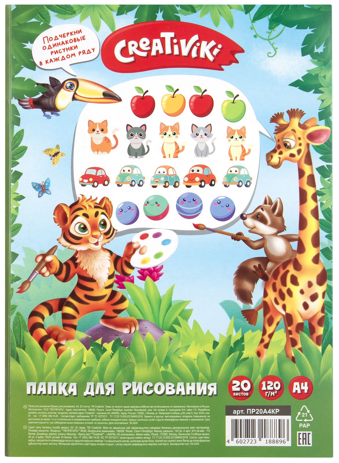 Формат: А4 Плотность, г/м2: 120 Количество листов: 20 Материал обложки: мелованный картон Вид продукции для творчества: Папка для рисования Размер: 210х297 мм Мин. партия и варианты упаковок: 1 / 36 Папка для рисования А4 20 л. Creativiki офсет 120 г/м2