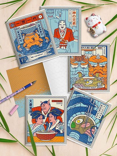 - Блоки 48 листов помещаются в износостойкие обложки из мелованного картона или хром-эрзаца. Популярные темы оформления тетрадей — живописные пейзажи, забавные животные, современная и ретро техника, яркие узоры. Особую выразительность рисункам придает отделка глиттером, выборочным или сплошным УФ-лакированием, 3D-тиснение и т. д.