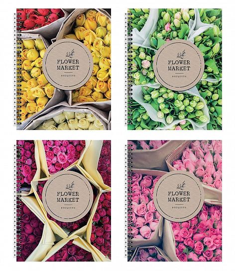 Формат: А5+ Количество листов: 48 Тип крепления: гребень Материал обложки: мелованный картон Линовка: клетка Размер: 170х205 мм Мин. партия и варианты упаковок: 1 / 4 / 80 Тетрадь 48 л. А5+ клетка, на гребне, офсет Schoolformat ЦВЕТЫ В БУКЕТАХ мелованный картон, выборочный УФ-лак