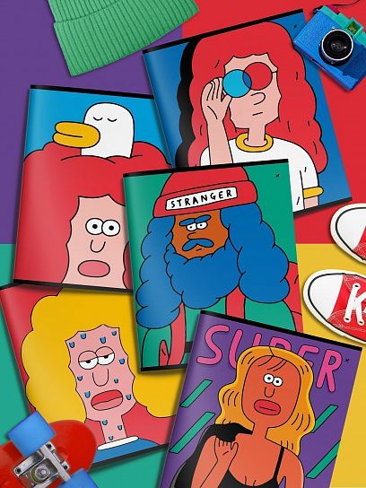 Формат: А5 Количество листов: 48 Тип крепления: скрепка Материал обложки: мелованный картон Линовка: линия Размер: 165х203 мм Мин. партия и варианты упаковок: 1 / 5 / 80 Тетрадь 48 л. А5 линия, на скрепке, офсет LOREX CARTOON STRANGERS мелованный картон, двойная обложка, запечатка форзаца, soft touch