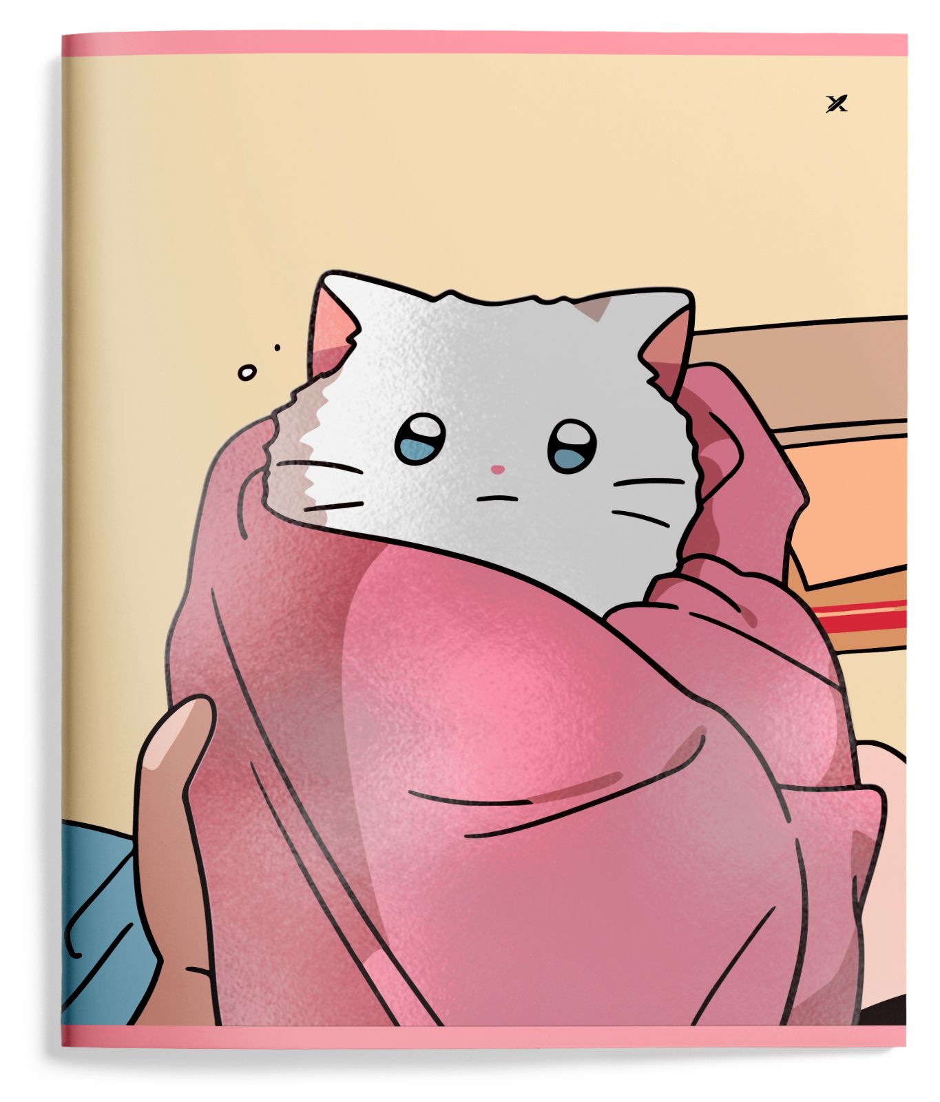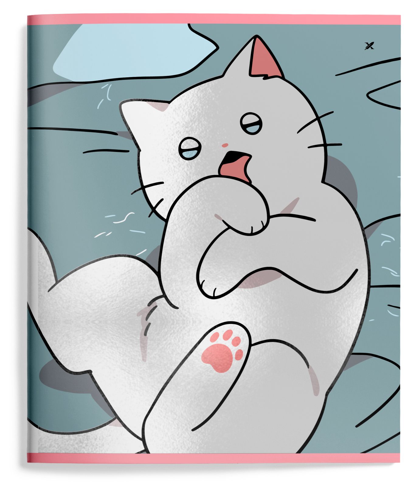 Формат: А5 Количество листов: 48 Тип крепления: скрепка Материал обложки: мелованный картон Линовка: клетка Размер: 165х205 мм Мин. партия и варианты упаковок: 1 / 5 / 60 Тетрадь 48 л. А5 клетка, на скрепке, офсет LOREX SNAPPY CAT мелованный картон, запечатка форзаца, soft touch, выборочный УФ-лак