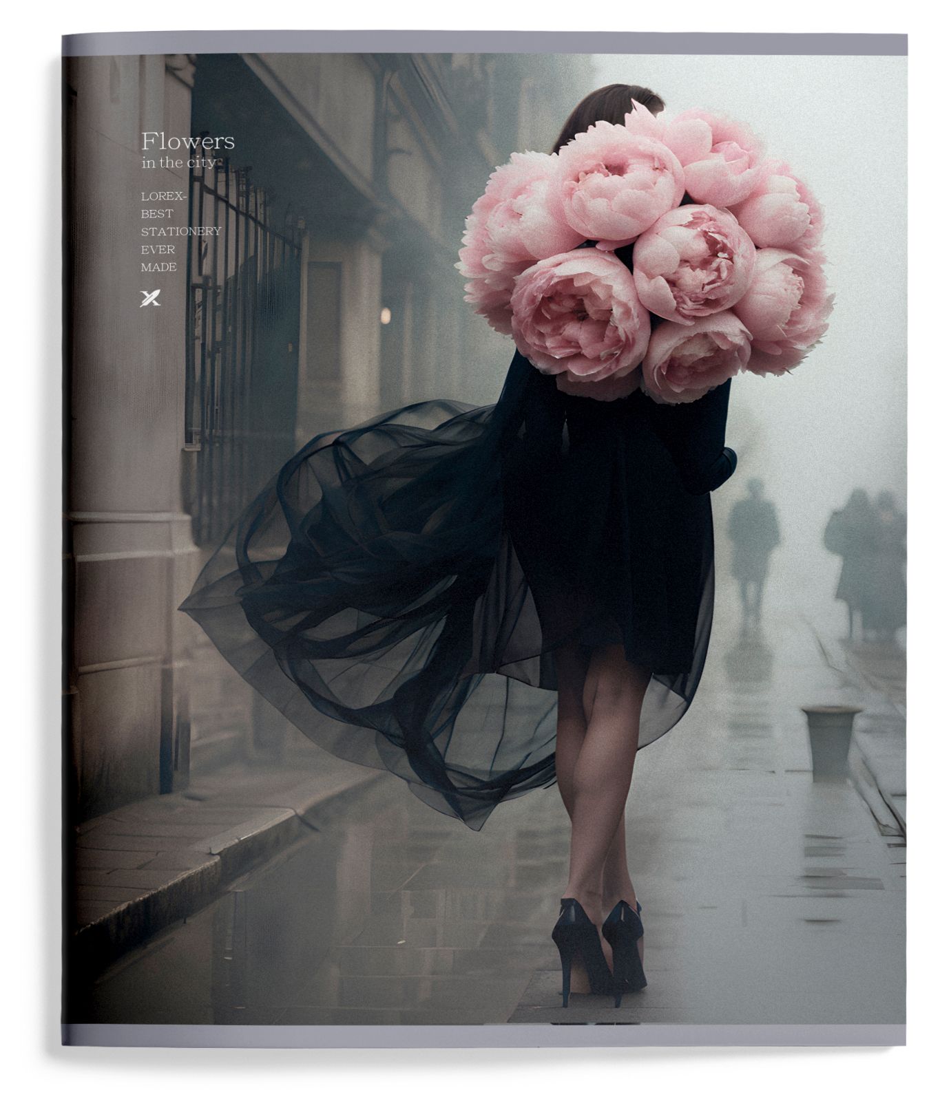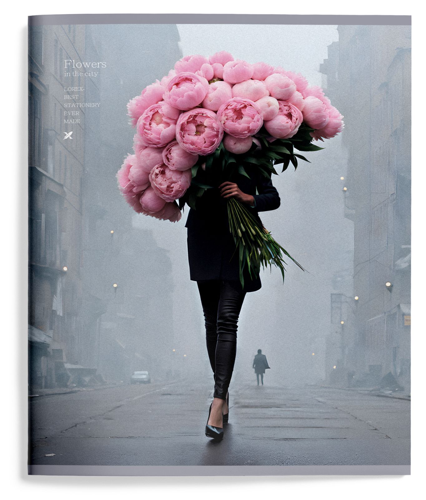 Формат: А5 Количество листов: 48 Тип крепления: скрепка Материал обложки: мелованный картон Линовка: клетка Размер: 165х203 мм Мин. партия и варианты упаковок: 1 / 5 / 80 Тетрадь 48 л. А5 клетка, на скрепке, офсет LOREX FLOWERS IN THE CITY мелованный картон, двойная обложка, запечатка форзаца, soft touch