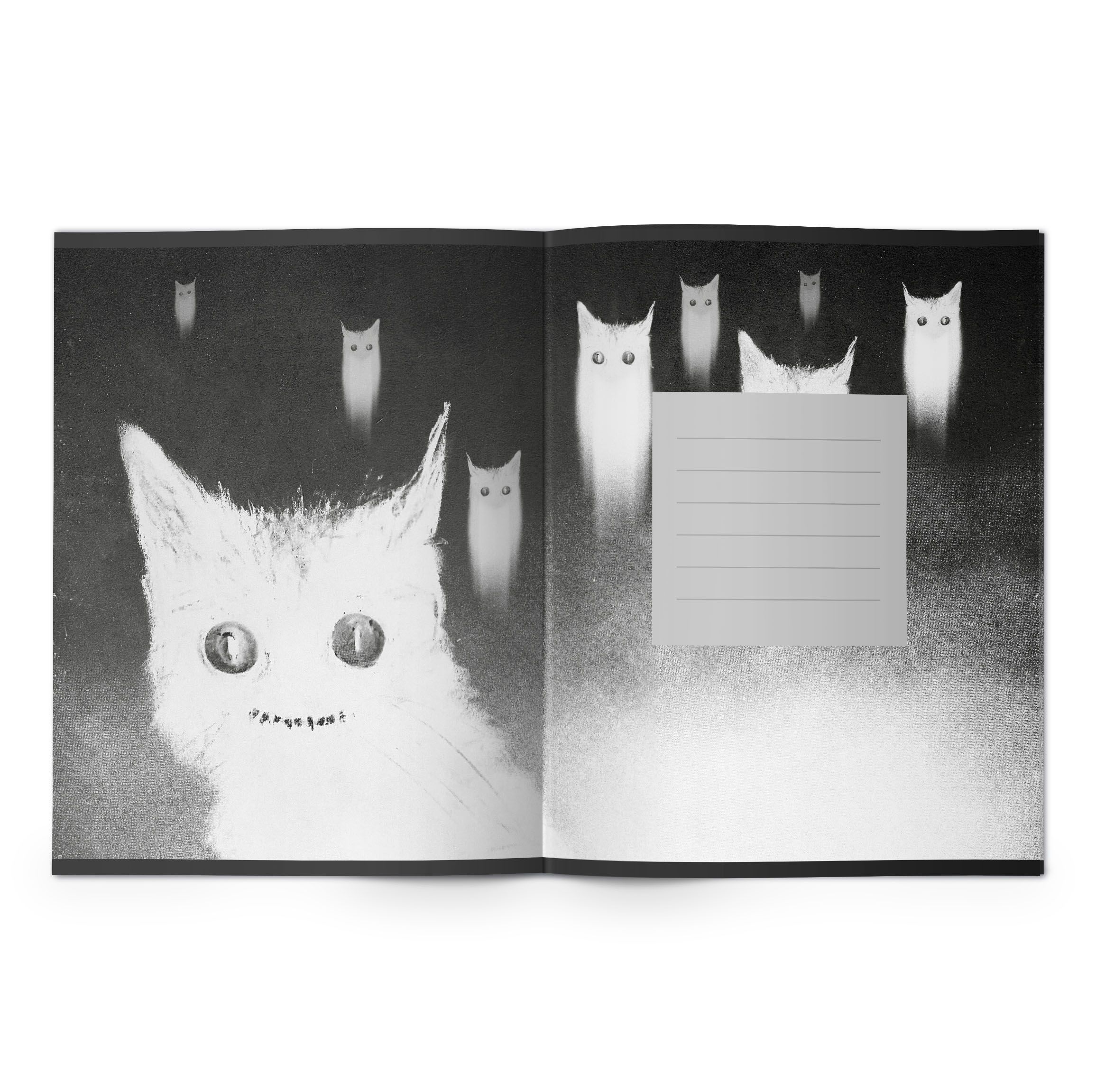 Формат: А5 Количество листов: 48 Тип крепления: скрепка Материал обложки: мелованный картон Линовка: клетка Размер: 165х203 мм Мин. партия и варианты упаковок: 1 / 5 / 60 Тетрадь 48 л. А5 клетка, на скрепке, офсет LOREX SCARY CAT мелованный картон, двойная обложка, запечатка форзаца, soft touch