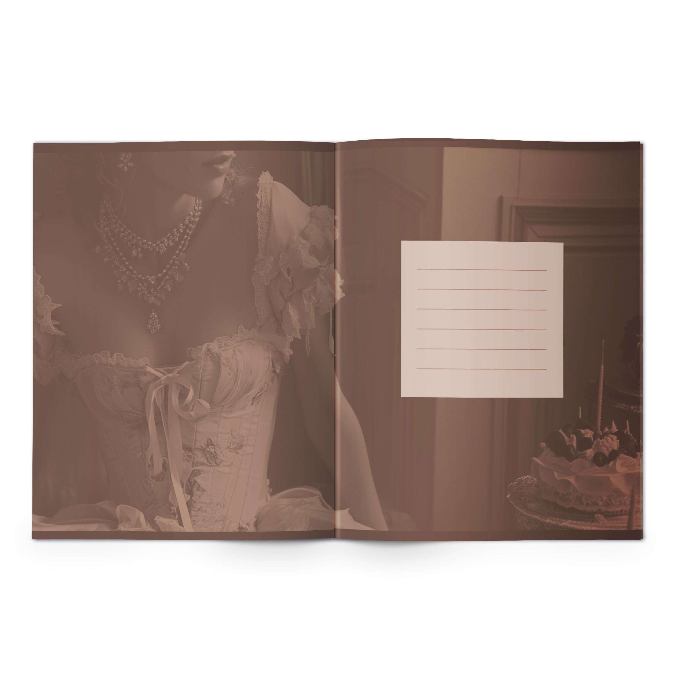 Формат: А5 Количество листов: 48 Тип крепления: скрепка Материал обложки: мелованный картон Линовка: клетка Размер: 165х203 мм Мин. партия и варианты упаковок: 1 / 5 / 60 Тетрадь 48 л. А5 клетка, на скрепке, офсет LOREX ROCOCO PROVOCATION мелованный картон, двойная обложка, запечатка форзаца, soft touch
