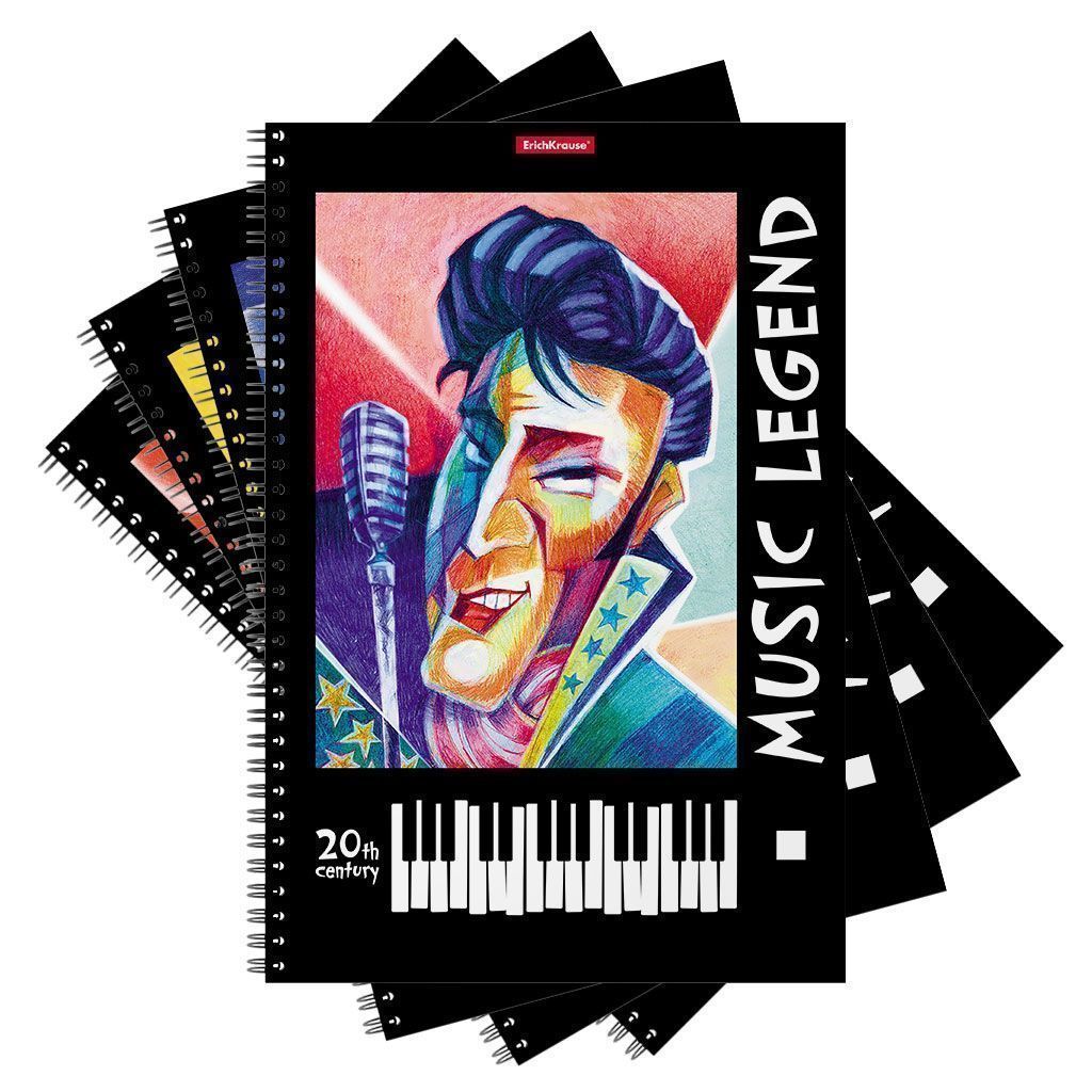 Тетрадь для нот формата А4 (200x297 мм). Ориентация - вертикальная. Обложка из высококачественного мелованного картона плотностью 190 г/м2. В блоке 24 листа. Бумага офсетная плотностью 80 г/м2. Цвет линовки - черный. Тип скрепления - спираль. Имеет справочный материал.