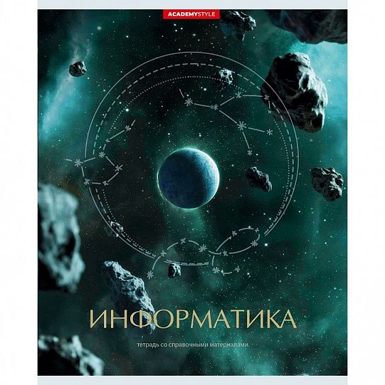 Количество листов: 48 Тип крепления: скрепка Материал обложки: мелованный картон Линовка: клетка Предмет: Информатика Мин. партия и варианты упаковок: 1 / 20 / 60 Тетрадь 48 л. клетка КОСМОС Информатика мелованный картон, сплошной УФ-лак