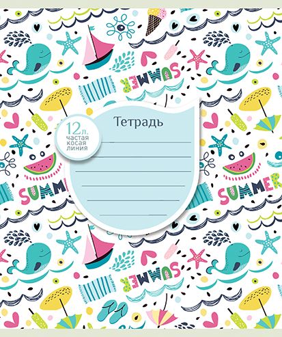 Формат: А5 Количество листов: 12 Тип крепления: скрепка Материал обложки: мелованный картон Линовка: частая косая линия Вид бумаги внутреннего блока: офсет Мин. партия и варианты упаковок: 1 / 20 / 120 Тетрадь 12 л. частая косая линия ВОЛНЫ, МОРЕ, ЛЕТО! мелованный картон
