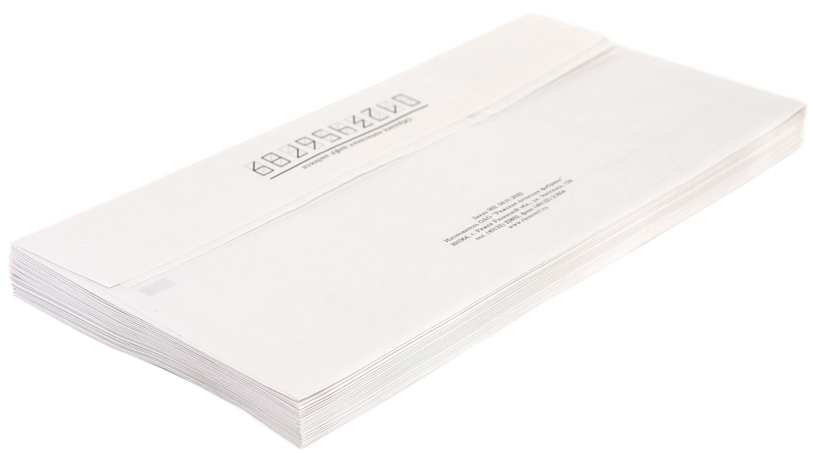 Цвет: белый Плотность, г/м2: 80 Количество в упаковке, шт: 100 Размер: 110х220 мм Формат конверта: Е65 Способ заклеивания: стрип Мин. партия и варианты упаковок: 1 / 100 / 1000 -