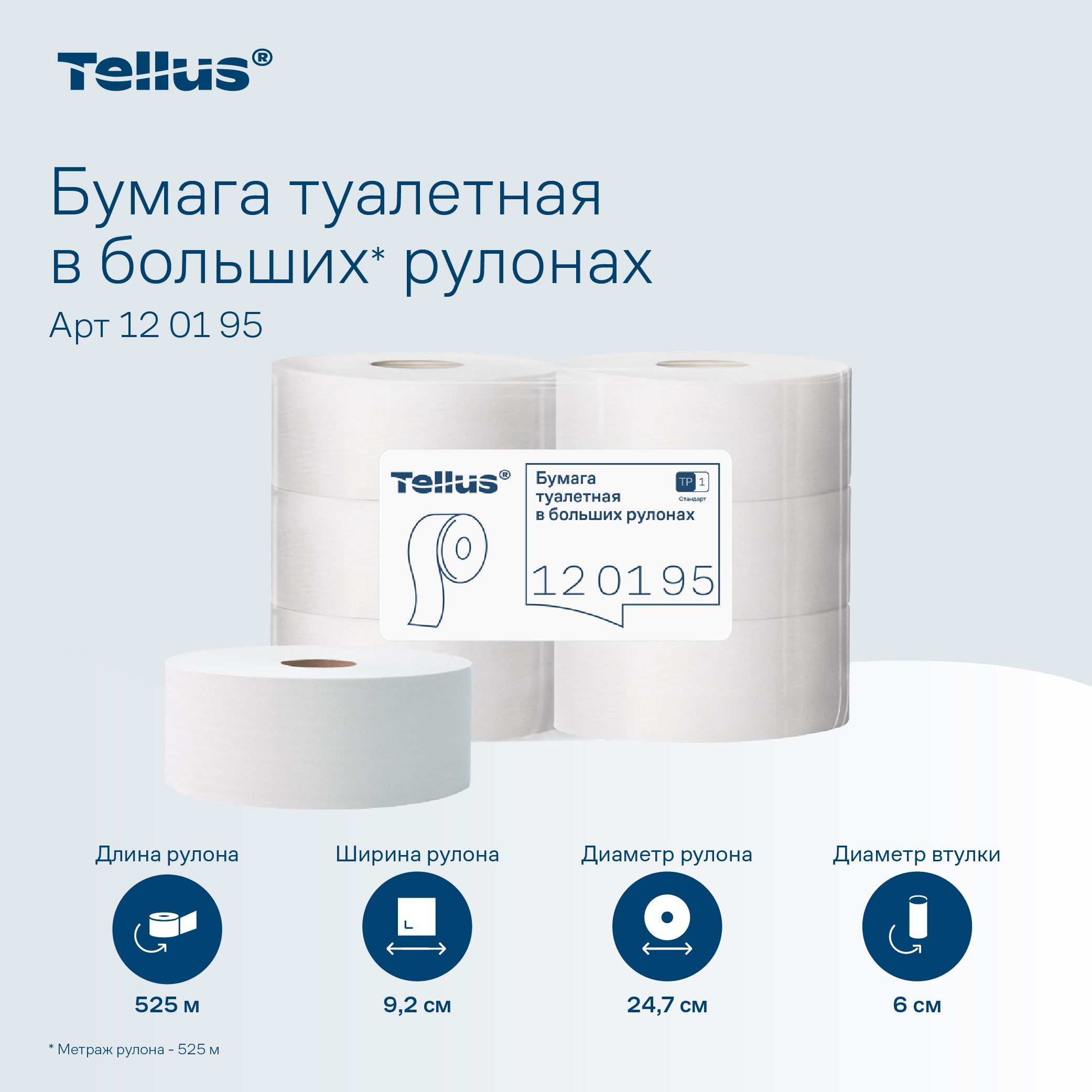 Цвет: белый Длина, м: 525,00 Вид изделия: Бумага туалетная Количество слоев: 1 слой Материал: вторичное сырье Упаковка: полиэтилен Мин. партия и варианты упаковок: 1 / 6 Туалетная бумага, Tellus UNIVERSAL T1, 1-слойная, без перфорации, рулон 525 м, вторичное сырье, серая