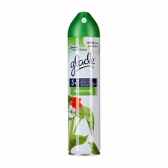 Объем, мл: 300 Отдушка: свежесть Вид освежителя воздуха: аэрозоль Торговая марка: Glade Сухое распыление: Нет Мин. партия и варианты упаковок: 1 / 12 -